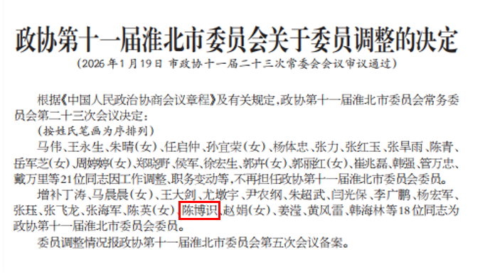 1月19日,经淮北市政协十一届二十三次常委会会议审议通过,伟德官网英语教研室教师、九三学社社员陈博识增补为政协第十一届淮北市委员会委员