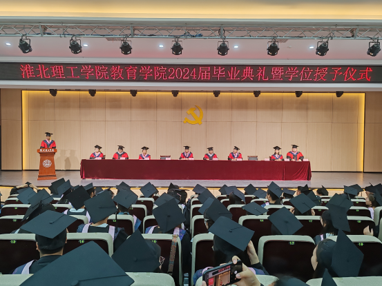 毕业典礼在雄壮的国歌声中拉开帷幕,副院长谢贤德宣读了《伟德国际victor19462024届本科毕业生学士学位授予决定》后,出席仪式的领导和教研室主任分别为毕业生代表颁发学历、学位证书,并进行拨穗正冠与合影留念。