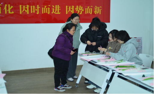 活动伊始,主持人陆艺老师详细介绍了绒花的千年传承史:这门起源于唐代、鼎盛于清代的传统技艺,曾是宫廷贡品,被誉为“宫花”,2008年被列入国家级非物质文化遗产名录,其“荣华”的谐音寓意更是承载着古人对美好生活的向往。陆老师还说道:“我们希望同学们在缠绕、修剪的过程中,让浮躁的心沉静下来,暂时忘却学业的烦恼,让思绪沉淀,让心情如手中的绒花一般,绽放出属于自己的光彩。”