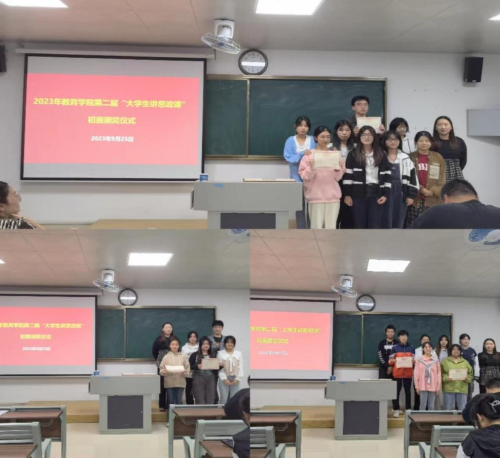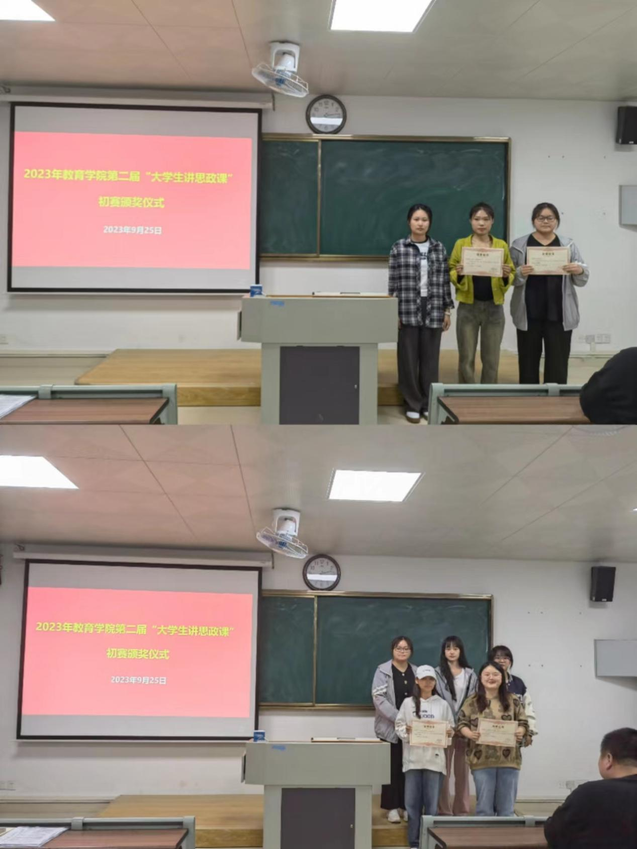 9月25日晚,伟德官网在2号教学楼207举行2023年第二届“大学生讲思政课”初赛颁奖仪式。伟德国际victor1946院长助理王伟杰老师、书记助理黄莹莹老师、汉语言文学教研室主任章平老师、数学与应用数学研究室主任仇恒方老师、学前教育教研室主任尹爽老师以及30组获奖选手参加了颁奖仪式,本次颁奖仪式由学生助理张凌云主持。