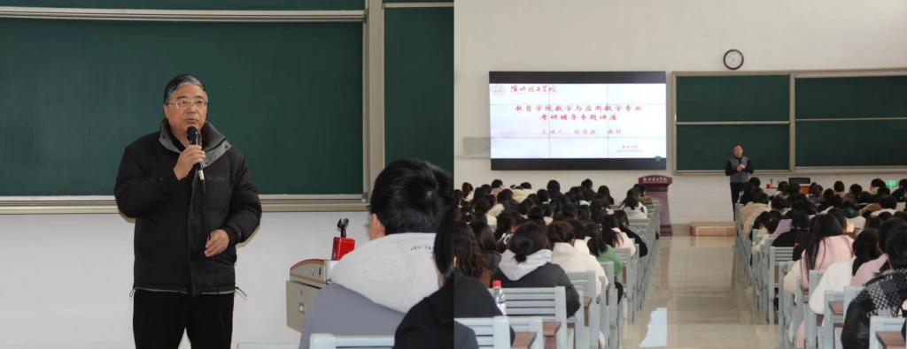 大会邀请数学博士侯为波教授作专题报告。侯教授用充满激情和节奏感的语调为大家带来了一场生动有力的精彩报告。首先,他为大家详细分析了当前的考研形势,阐述了考研的重要性,引导学生们正确认识考研的价值和意义,让在场的每一个人都强烈地感受到了考研的魅力和挑战。随后,侯为波教授针对数学与应用数学专业的特点,同时结合自身多年的教学和研究经验,从专业选择、学校选择、时间安排等方面进行了详细的介绍,激发大家考研的积极性和学习的进取心,并且提供了针对性的备考策略和方法。