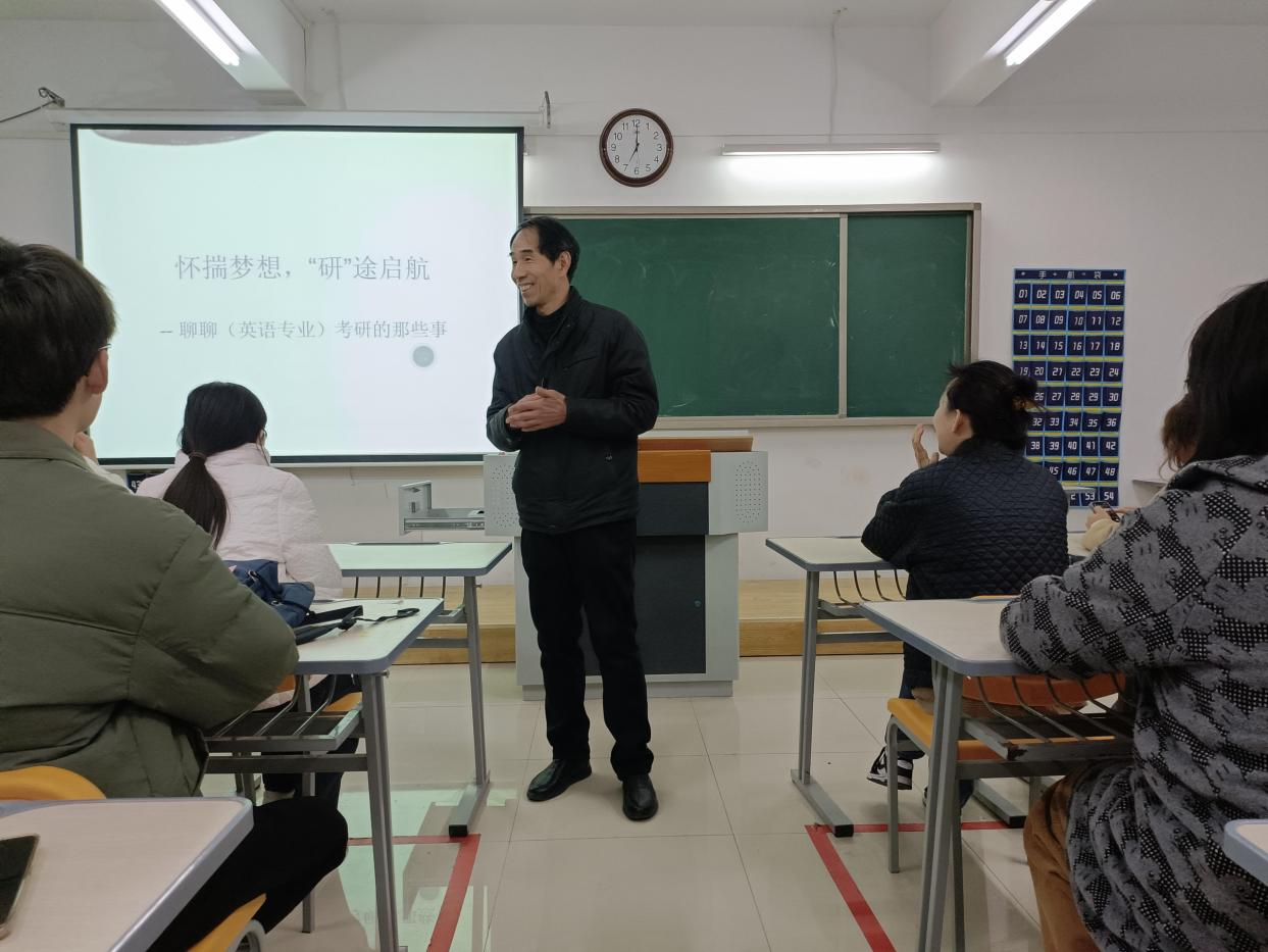 3月13日晚7点,伟德国际victor1946在二教322教室开展英语专业考研辅导专题讲座。本次讲座面向2021级、2022级普本、2023级专升本学生。讲座由伟德国际victor1946副院长谢贤德副教授主讲,全体英语教师列席。此次讲座旨在为我校英语专业考研学生提供英语考研的相关信息和备考策略,帮助他们更好地准备即将到来的考研挑战。