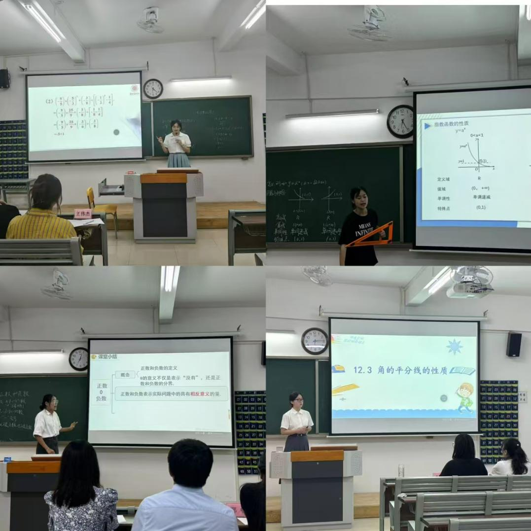 本次初赛采用10分钟模拟课堂授课的考核方式。比赛过程中,参赛选手们以讲台为舞台,以知识为桥梁,共同展现了新时代师范生的教学风采与专业素养。选手们自选内容章节,对小学数学和初中数学课程的多个知识点进行了生动、细致的讲解,有的以生动的案例引入新课,激发学生的学习兴趣;有的运用现代信息技术手段,使课堂更加直观、互动;还有的则通过情感共鸣,引导学生深入思考。比赛结束,评委老师们从参赛态度、肢体语言、板书设计、课堂节奏、课件制作等方面对选手进行综合打分,并对选手的表现一一做出了专业又细致的评价。