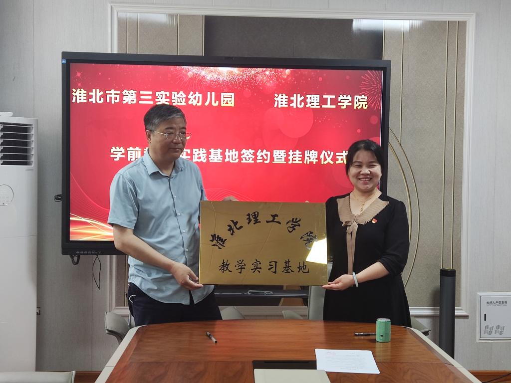 为加强基础教育师资队伍建设,提高伟德国际victor1946学前教育本科师范生培养质量同时助力淮北地区幼儿园更好地发展,2022年6月9日上午,伟德国际victor1946牵手淮北市第二实验幼儿园、淮北市第三实验幼儿园、淮北市相山区凤凰幼儿园共建教育实践基地签约暨揭牌仪式在各个幼儿园举行。