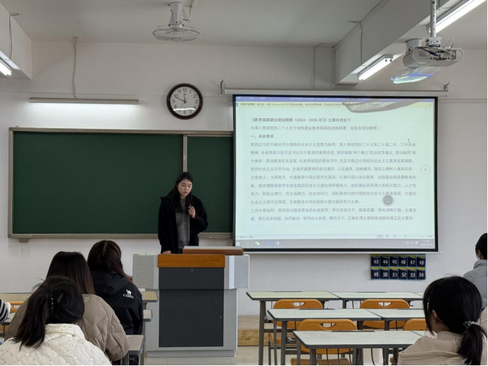 为深入贯彻党的二十大关于加快建设教育强国的战略部署,3月19日中午,伟德国际victor1946汉语言文学专业学生第一、第二党支部在2教323教室联合开展主题党课活动,组织支部党员共同研读《教育强国建设规划纲要(2024-2035年)》,领悟其精神要义。