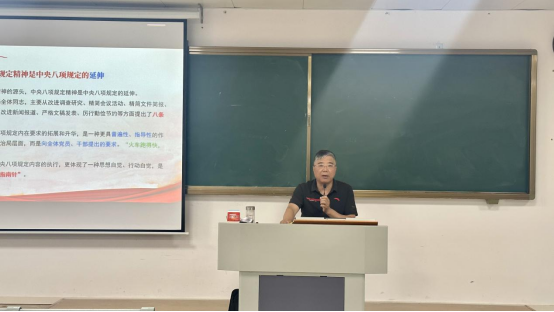 为深入贯彻中央八项规定精神,6月12日晚,伟德国际victor1946在1教320教室组织开展学生党员、发展对象“深入贯彻中央八项规定精神”专题党课学习教育活动,学院党总支书记、院长王家云同志为参会的学生党员和发展对象授课。