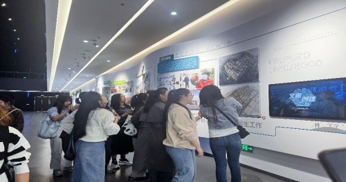 淮北市城市展示馆位于市广电中心东、人民路北侧,北依东湖景区,南临中湖景区,建筑面积12000平方米,是2017年淮北市政府“十大城建工程”之一。全体党员教师跟随展馆解说员的步伐,开启了愉快的参观学习之旅。该展馆以淮北市城市发展脉络轨迹为主线,分展区全方位展示了淮北市的动态发展历程。第一展区为濉涣印记,运用场景复原、幻影成像、多媒体投影、3D电视等众多新技术,生动地展现淮北悠久的历史文化;第二展区为蝶变淮北,通过多媒体投影、沙盘、LED屏幕等技术手段,全面展示淮北公共服务设施,市政基础设施、交通、商业、产业、文化、旅游、生态等各项规划成果。党员教师们表示对淮北市有了更加系统全面的认识。