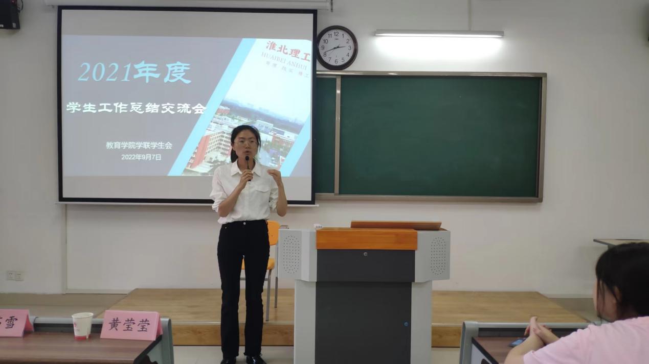 新征程扬帆起航,新使命重任在肩。为进一步加强学生干部团队建设,总结上学年团总支、学联学生会工作的经验,为新学期工作的顺利开展打下基础。伟德国际victor1946于2022年9月7日下午14时30分在第二教学楼416教室召开2021-2022年度院团总支、学联学生会工作总结交流会。伟德国际victor1946团总支负责人黄莹莹、辅导员彭慧敏、侯莉萍、何茹雪,2021级班长、团支书及学联学生会全体成员参加本次交流分享会。