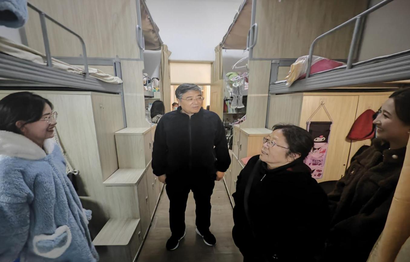 学院领导、辅导员老师与同学们零距离交流受到同学们的欢迎。王院长叮嘱同学们新学期要注意宿舍安全和谐,保持宿舍卫生整洁,确保新学期以最快的速度适应校园生活,进入学习状态,期末考试在即,希望大家认真复习,考取优异的成绩。孟院长嘱咐同学们注意身体健康,勤通风、多运动,养成良好的生活习惯,努力营造积极向上、和谐友好的宿舍氛围。辅导员老师们在走访中还将同学们的需求和需要解决的问题一一记下,尽快帮助同学们落实。同学们感谢各位老师的关怀并表示新学期定不负众望,努力学习,严格遵守校规校纪,以崭新的面貌迎接新的挑战。