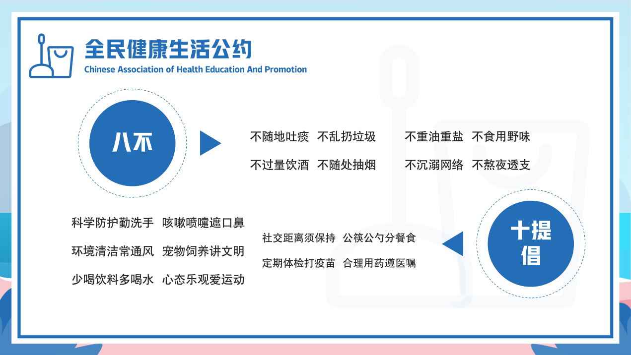 对“如何实现健康生活,提高生活质量”开展了讨论,号召同学们养成健康的生活习惯,经常开展寝室卫生大扫除,重视卫生环境建设,提高卫生意识和文明素养,养成良好的生活习惯。辅导员老师们还以“八不十提倡”的全民健康生活公约,提醒和倡导同学们自觉遵守。