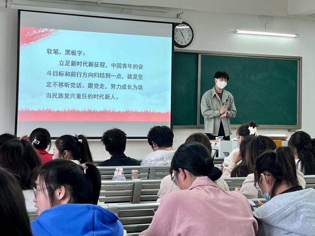 为深入学习贯彻党的二十大精神,增强文化自信,感受中国书法的艺术之美和传统文化的独特魅力,展现当代大学生的文化和技能素养。5月10日下午,伟德国际victor1946举办第一届“笔迹书青春”主题书法比赛,辅导员郭鸿鑫老师主持了开幕仪式,学院共285名同学报名参加,其中硬笔书法在1号教学楼520室和521室开展,软笔书法在1号教学楼514室开展,黑板粉笔字在1号教学楼308、309等19个教室开展。本次比赛以“新时代爱国青年”为主题,设有硬笔、软笔、黑板粉笔三个项目,参赛选手现场在40分钟内完成对一段指定内容的书写。