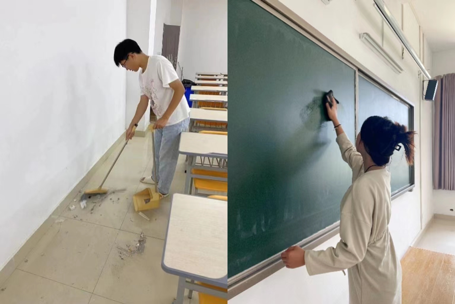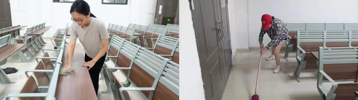 9月1日、2日,学院各学生党支部组织学生党员到教学楼对新生固定教室进行大扫除,为新生入学创造良好的环境。活动中各支部将学生党员分成若干小组,大家分工明确,不怕苦、不怕脏,清理教室的卫生死角、擦洗桌椅板凳,让教室变得干净明亮。