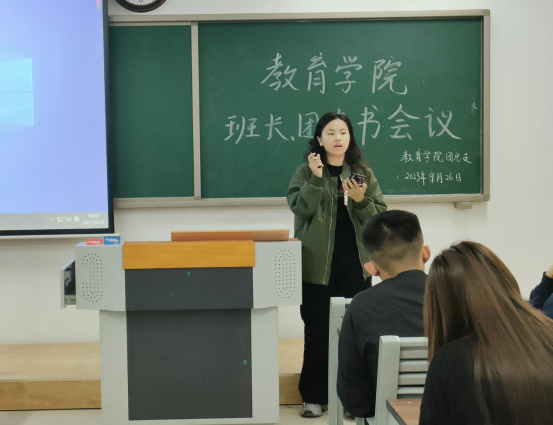 最后,学院学生会代表张蕊同学向大家介绍了关于智慧团建转接存在的问题及转接流程,耐心解答各位团支书的疑问,让班委更加熟悉其中的操作方法,进一步做好新生团员关系的转接工作。学生会文体部胡卫婷同学介绍新生班级大合唱注意事项,并对合唱曲目主题的选择做出说明,她强调排练大合唱是一次凝聚班级团结力、向心力的最好时机,同时希望各班级以昂扬的风采、饱满的精神状态参加比赛。