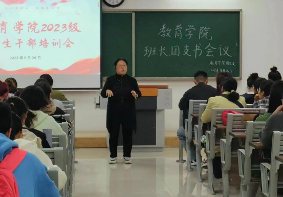为进一步强化学生干部队伍建设,发挥学生干部模范带头作用,促进学院学生管理工作的有序开展,9月26日下午,伟德国际victor1946在1号教学楼520教室召开2023级学生班级班长、团支书培训会。学院分管副书记孟向红、书记助理黄莹莹、团总支副书记许海涛、2023级全体辅导员以及2023级全体班长、团支书参加了本次培训会。