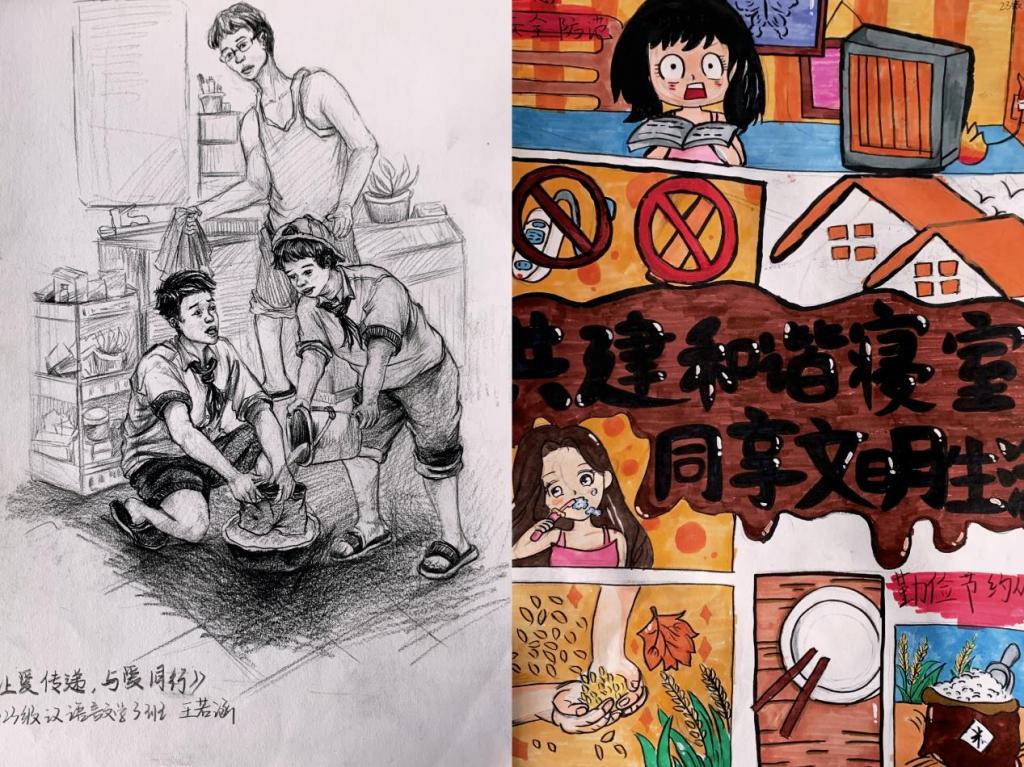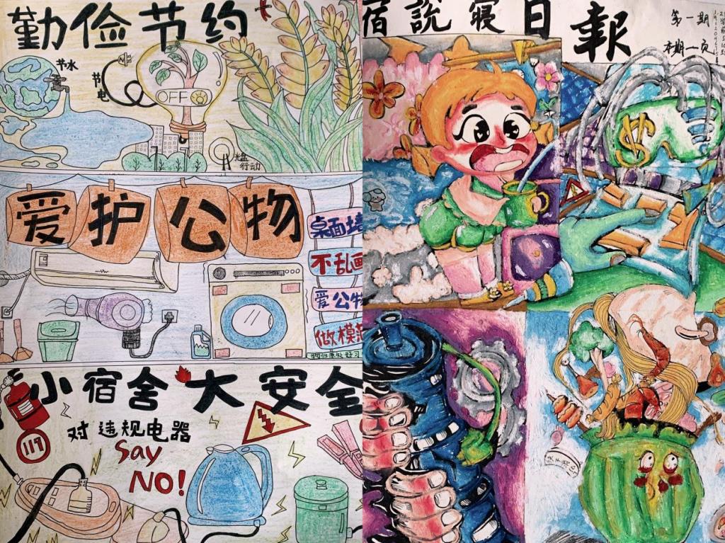 本次宿舍公益广告设计大赛共收到创意作品48份,共有31份作品获奖,其中《有容乃美》等6个作品获得一等奖,《大学生的一个月》等10个作品获得二等奖,《宿舍生活,节水节电》等15个作品获得三等奖。各班级报送的参赛作品围绕宿舍勤俭节约、爱护公物、勤俭防范展开,主题鲜明,体现了当代大学生的设计风格和创作理念。这些作品中的内容也体现出了宿舍生活的点点滴滴,向我们展现了学生公寓的温馨与同学们的青春风采。