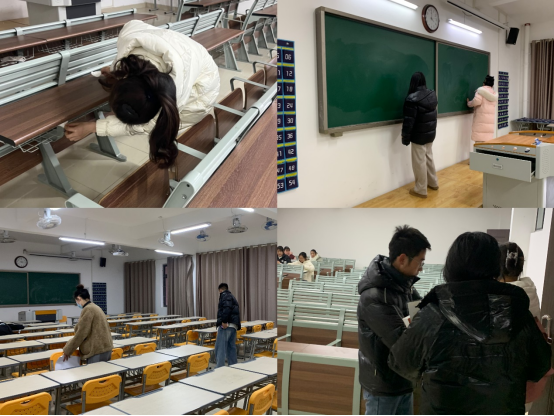 检查完学生寝室后,辅导员老师们又到教学楼,对伟德官网责任教室卫生区域进行检查。大家认真检查了包括教室的地面、黑板、窗户等区域的卫生情况。同时,还认真查看了教室的消毒和通风情况,以确保空气质量良好。