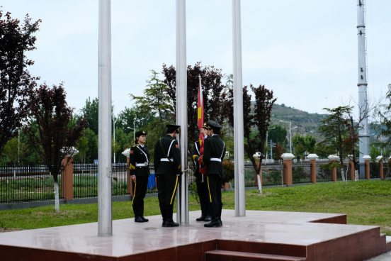 师生们沐浴着清晨的阳光,在庄严的国歌声中向冉冉升起的五星红旗行注目礼,向伟大的祖国致以深情的祝福。