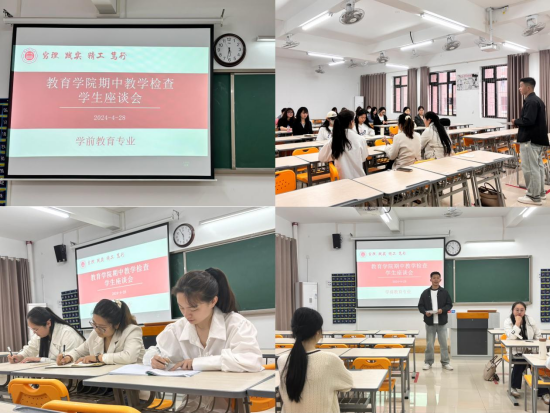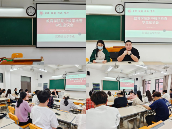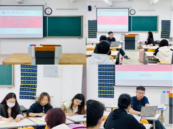 为全面掌握教学运行情况,切实保障教育教学工作质量,进一步加强师生间的沟通交流。伟德国际victor1946于4月28日晚在2号教学楼306、307、308、309教室分专业召开期中教学检查师生座谈会,数学与应用数学、英语、汉语言文学、学前教育等四个专业的教研室主任、教师代表、学生代表参加了座谈会。会议分别由学院书记助理黄莹莹、辅导员彭慧敏、高伟和张颖颖主持。