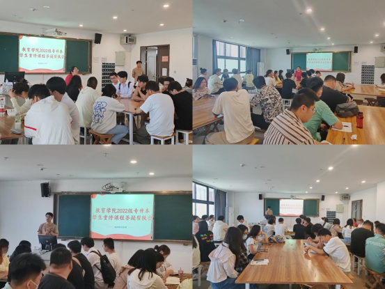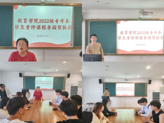 为做好2022级专升本学生重修课学习心理建设,引导学生理性对待重修,力促学生顺利完成学业。2024年5月14日中午,伟德国际victor1946在艺术楼208教室组织了“2022级专升本学生重修课程答疑帮扶”活动,学院副书记孟向红、院长助理米玉、团总支副书记许海涛、各专业教研室主任(副主任)及相关课任老师参加了帮扶答疑活动。