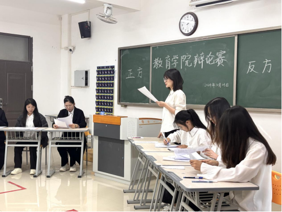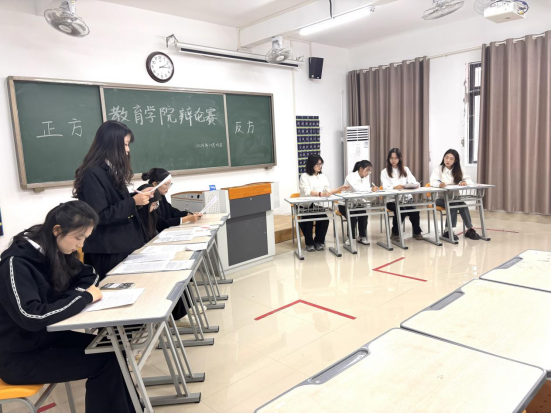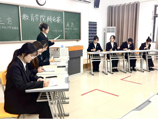 活动前期,由学生自愿组成的17支队伍进行初步筛选,第一轮选拔结束共推举6支队伍进行复赛。复赛开始,比赛现场气氛热烈,正反和反方围绕“国家发展成就主要靠精英引领还是大众奋斗”为辩题展开了激烈的辩论。正方辩手们坚定地认为国家发展成就主要靠精英引领,他们指出精英们凭借卓越的智慧、创新的思维和强大的领导力,为国家的发展指明方向。反方辩手则强调国家发展成就离不开大众奋斗,大众作为国家的主体,通过辛勤劳动、不懈努力,在各个岗位上默默奉献,共同推动国家不断前进。