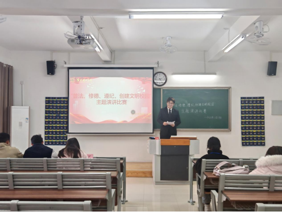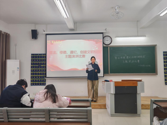 此次演讲比赛,让“普法、修德、遵纪,创建文明校园”的理念更深地融入学院学子的认知与言行。课堂上的认真聆听、宿舍里的互相包容、校园中的自觉守序,这些日常点滴里的践行,让文明有了具体的模样;而这份在校园中扎根的规则意识与道德自觉,终将内化为每个人的行为准则,让“普法、修德、守纪”成为伴随一生的素养,让文明的种子在更广阔的天地里生根发芽。