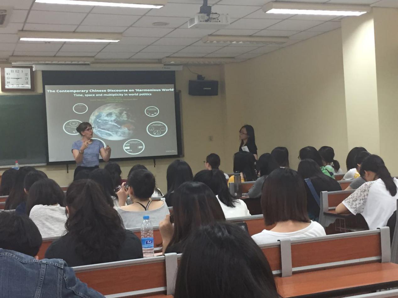 Dr.Nordin在讲座中列举了我们耳熟能详“天下”、“和而不同”等概念,并对这些来自中国古代哲学的词汇做出了自己的定义和辨析。她讲到了“反抗和谐”的一些方式,譬如在中国年轻人的世界中十分常见的网络“恶搞”文化即“河蟹”,在使同学们忍俊不禁的同时对中国的文化现状及和谐的内涵产生了深刻的思考。