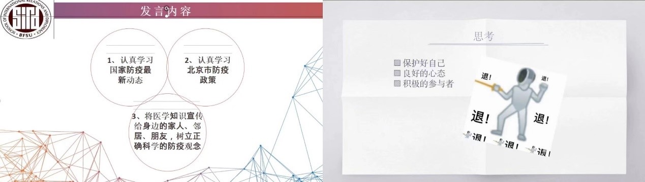 2020级硕士研究生何庄仪首先分享了身边的抗疫小故事,对疫情防控志愿者表达了深深的敬意和由衷的感谢,表示:“志愿者的工作单调且繁琐,非常考验一个人的耐力和协调能力,在酷暑夏日,志愿者们能够舍弃个人私利,积极投身于保障社区居民正常生活的志愿工作中,非常值得尊敬和敬佩。实践证明“外防输入、内防反弹”的总策略和“动态清零”总方针及一系列应对措施是行之有效的,相信风雨终归过去,定将迎来彩虹。”