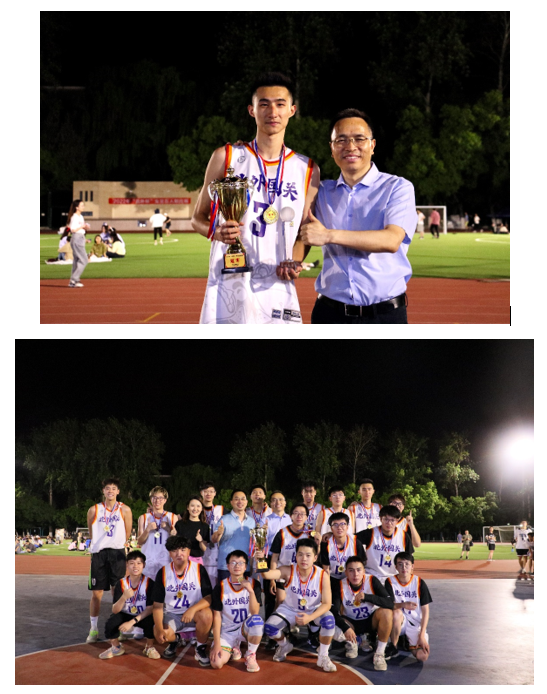 本次比赛,北京外国语大学校长杨丹老师,副校长丁浩老师及永利集团88304官网集团彭澍老师、钱梦婷老师到场观战并为运动员加油打气。在赛后颁奖环节中,杨丹校长为国关男篮所有队员颁发了冠军奖杯和奖牌,与队员们进行了亲切的交流,表达了对受伤队员的关心,并鼓励同学们将在球场上拼搏奋斗、团结一致的精神发扬在今后的学习生活中,再接再厉,更进一步。