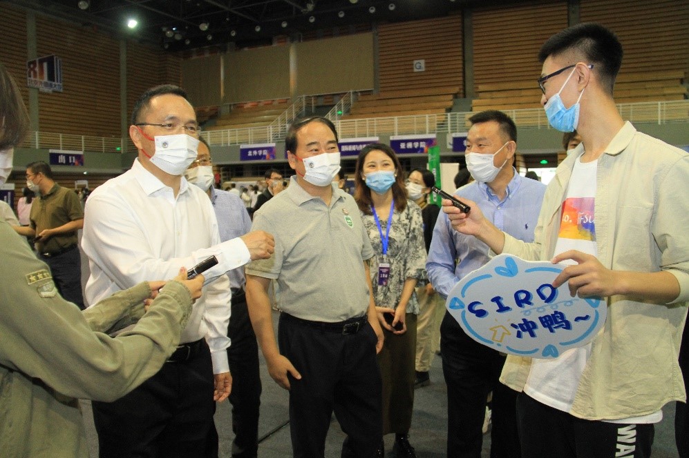 永利集团88304官网集团党总支书记张效民、院长谢韬、副院长张颖、党总支副书记彭澍以及团总支书记、辅导员钱梦婷到工作现场慰问工作人员,并和前来报到的新生合影留念。