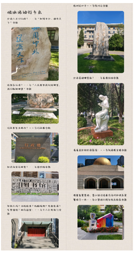 招新宣讲结束后,在国关学生会的精心设计和引导下,110位本科新生被现场分为16组,前往北外校园内最具特色的9个景点进行拍照打卡。新同学们在熟悉校园的过程中互相了解团队成员,结识了更多朋友,更好的融入到国关集体当中。