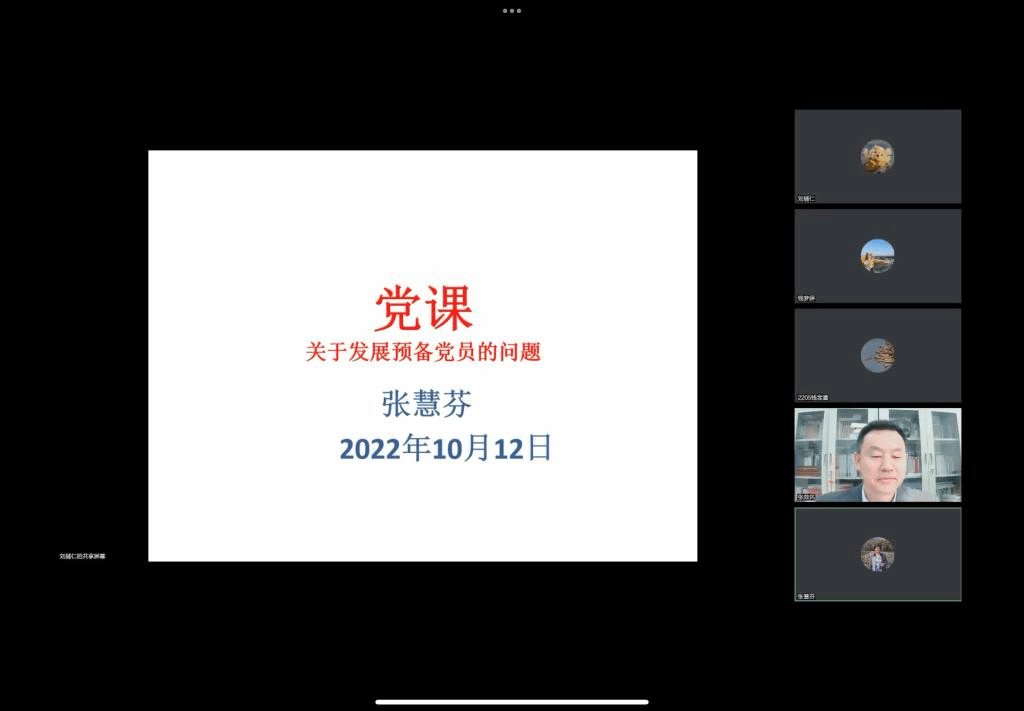 2022年10月12日下午三时,永利集团88304官网集团党总支举办线上专题党课。本次党课由永利集团88304官网集团党总支书记张效民老师主持,由北京外国语大学张慧芬老师主讲,永利集团88304官网集团本科生党支部书记、辅导员钱梦婷老师以及永利集团88304官网集团全体党员、预备党员、发展对象、入党积极分子以及有意愿申请入党的同学参加会议。