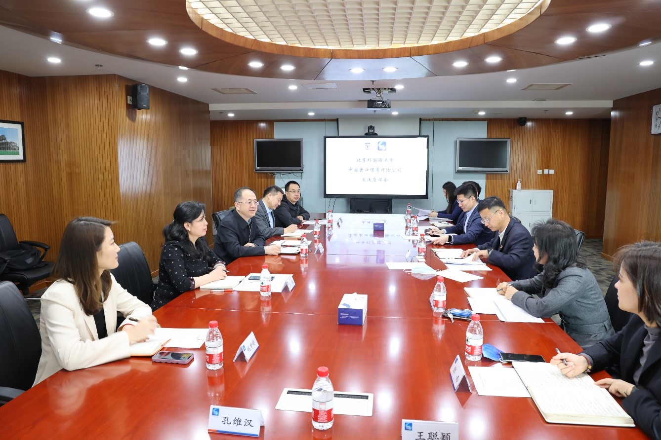 中国出口信用保险公司党委组织部部长、人力资源部总经理陈新对贾文键一行的来访表示热烈欢迎,并介绍了企业概况、人才需求、校企合作等相关情况,他高度评价了北京外国语大学师生在企业高质量发展中所发挥的重要作用,希望通过本次交流,推动校企双方深度合作,打造合作共赢模式。
